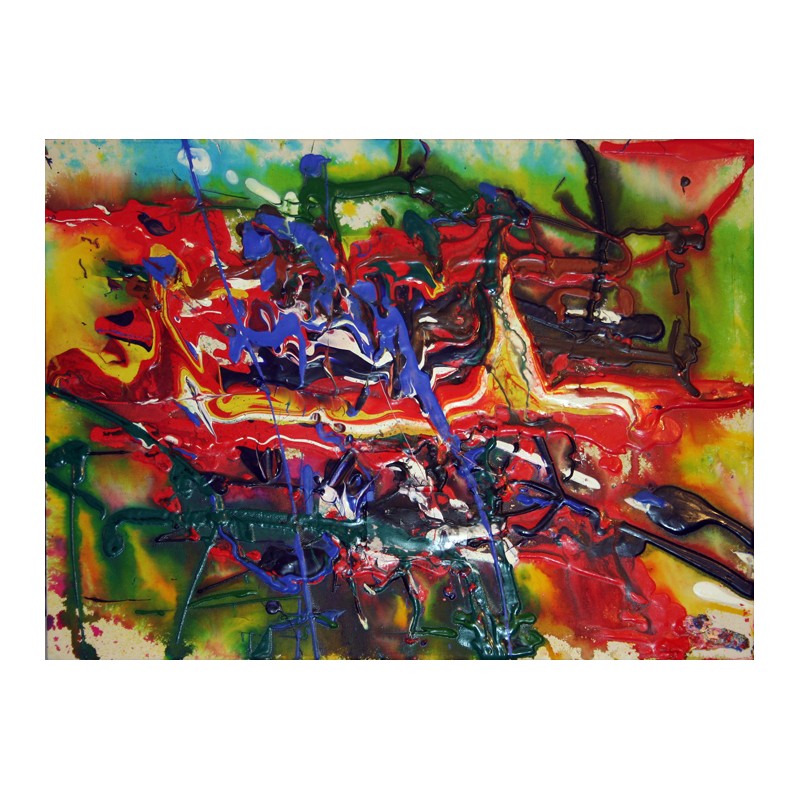 A very vibrant canvas with a suggestion of a blue horse in the for most layer. This is an experimental canvas that came together quite well, feels great to the touch. It has an inked background with 4 layers of application. This is a feel good piece with lots of vibrant colouring, enjoy.