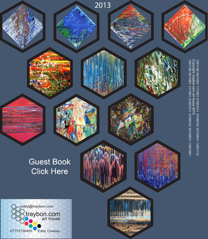 My name is Eddy Crowley, I am a self taught abstract artist from Omagh, Co. Tyrone, Northern Ireland and this is my gallery site, www.traybon.com .I am a creative in various formats, starting as an illustrator / cartoonist, then graphic designer, magazine editor, marketing manager and now, for the past decade, Bi-polar, painting and documenting my moods and emotions. Taking all the skills I used in a virtual environment into practice in my artwork creation, abstract mood and emotion paint style with gravity flow techniques.